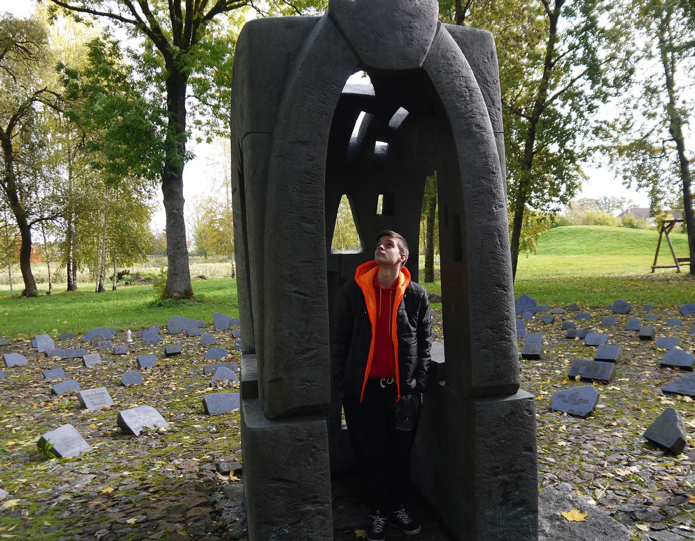 2. Tremtinių memorialinis paminklas su „Rūpintojėliu“, apsuptas akmenėlių-antkapių su tremtyje žuvusių Rokiškio krašto žmonių vardais. Rokiškis.
